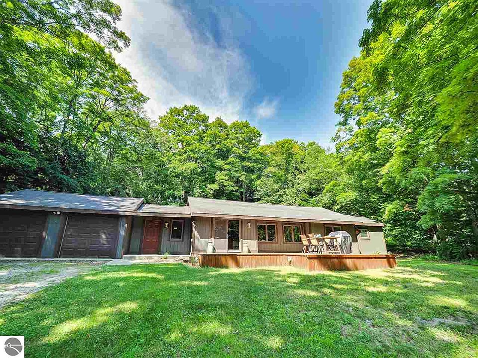 This up north Leelanau County home is completely remodeled and sits on a large parcel with low maintenance lawn filled with gorgeous perennials. Only minutes from Lime Lake public boat access! Enjoy a lovely, spacious layout in this all main level ranch. This 3 bed, 2 bath is perfect for a family (in coveted Glen Lake School district, plus easy commute to Traverse City), retired couple (dream location - near Bohemian Beach and Good Harbor, convenient layout) or income property (close to Sleeping Bear Dunes, Fishtown- Leland, Sugar Loaf, The Crystal River and more). Perfect for all seasons with natural gas and central air + fireplace. Beautiful materials throughout: oak hardwood flooring, tiled baths, new Bali Blinds in bedrooms, plus updated kitchen! Attached two car garage, plus new carport (installed in 2019)--perfect for seasonal vehicle or boat. Sellers made major updates in 2019: new insulation, new furnace and landscaping.