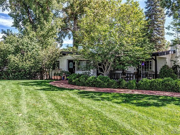 RARE OPPORTUNITY IN LITTLETON~PAINTED BRICK RANCH ON 1/2 ACRE PRIVATE CORNER LOT~GORGEOUS MOUNTAIN VIEWS~SERENE COUNTRY SETTING! You will love this idyllic Mid-Century home with a circular driveway in view of the mountains comprised of two lots & multiple outdoor spaces to enjoy Colorado's abundant sunshine. This unique property is infused with European charm, yet can be transformed to fit any design preference--Traditional to Mid-Century Modern. The seller recently completed major landscaping upgrades to the tune of 25-30K to include a new French drain system with sump pump & boulders lining the south-facing drive. A dog run surrounds the property; you have an oversized garage w/ exterior access, work bench, large storage shed. You'll love the vaulted sun room tiled in terracotta, bead board ceiling, a wall of windows with plantation shutters allowing for plentiful light; a perfect space to relax and entertain friends! From here step out to the brick patio with potted morning glories, mature shade trees and a flagstone walkway leading to the fenced backyard. Enter the vaulted family room to find a cozy fireplace, opening to the kitchen featuring beautiful Granite counters/breakfast bar, pure white cabinetry. At the entrance you have a formal dining room with cozy sitting area. There are two bedrooms on main floor, the Primary with ensuite 3/4 bath, skylight & converted 4th bedroom made into a dressing room/retreat/laundry area. Also ideal as a nursery. The full garden level basement has been freshly painted in neutral colors with brand new carpet; here you have rec/workout space & bedroom with ensuite 3/4 bath. This fantastic residence is walking distance to downtown Littleton offering a bevy of great restaurants & shopping, the Light rail, wonderful parks & events hosted by the City of Littleton. You have adjacent horse properties, magnificent mountain views from the front porch in winter! Great neighbors & award-winning Littleton schools. Welcome home!
