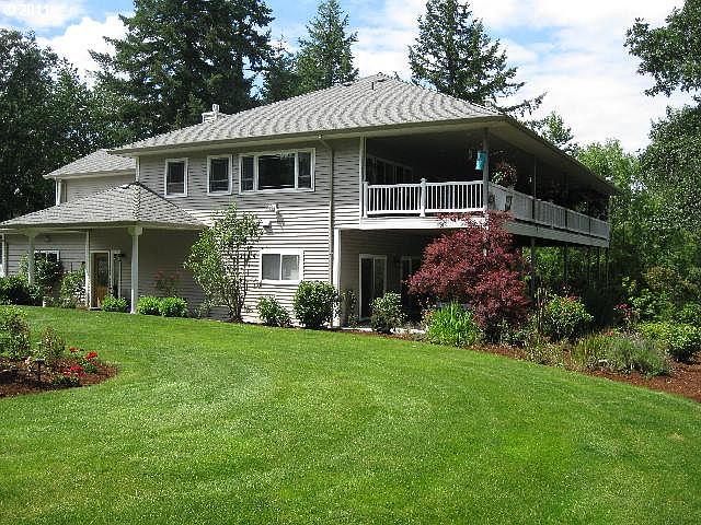 Huge price reduction on CUSTOM RETREAT! one owner home w/375' Abiqua Creek frontage! Beautiful lush park-like lndscp, 15' X 66' cvrd deck on 2nd flr takes advt. of FAB views!3268SF lovely open flr plan,ktch w/grnt cntr tops, cstm cabinets,isl. bar w/sink, propane stv,dr,Mstr Suite w/fp, walk in closet, dual sinks, lr w/FP,fr,bonus rm. 2800sf garage deep enough for 37' Mtr hm.
