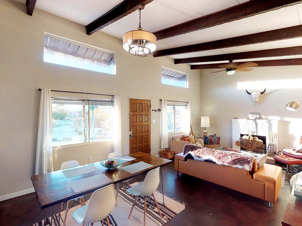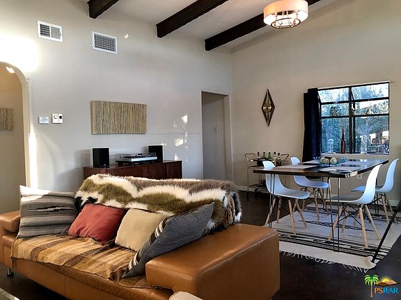Your own private desert paradise; a place to hit pause where past and future mute out. A place to recapture your wonder of the world, a place to recharge your soul, a place where lines in the sand blur away immersed in serenity & space. You don't have to wait for your dream... it's here just steps from the world renowned Joshua Tree National Park. Enchanting home on an acre tastefully updated w/designer's eye creating the ultimate desert retreat & shrewd investment w/possibilities in this rapidly gentrifying community. Expansive gallery-like living/dining rm w/soaring ceilings, fireplace & concrete floors. Generous kitchen w/adj breakfast rm. Spacious cabana & yard w/views. Over-sized master w/reading room & luxe bath. Guest bedrm w/views & 2nd bath adj. Also garage/storage/laundry. Minutes from fabled downtown JT w/it's eclectic vibe of galleries, farmer's market & visitors from around the globe. This property has a rare mix of intangibles, aesthetics, features & investment potential.