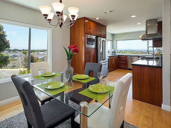BEST OCEAN VIEWS! Panoramic sit down ocean views from all main living areas and master bedroom. Kitchen walls opened up and large picture windows installed to enjoy stunning views from living room, dining room and kitchen. Large wrap around ocean view patio for indoor/outdoor entertainment. Single Story End Unit feels like detached. Turnkey with top of the line upgrades in every room. Great location! Minutes to great shopping, dining and the beach. Top schools, walk to desirable Pacific Rim Elementary.