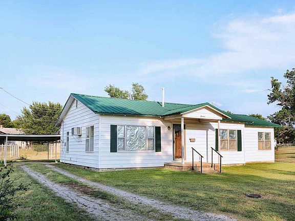 Own your own half of the block! This property spans the entire block with 5 lots. 3BR 1BA home with nice floor plan, large master bedroom, covered back patio, carport (2), and metal roof. Gas heat and water heater. Window units keep it cool. There is an additional smaller home that was once rented and will take renovation to use it again. There are 4 water meters in place but only one is currently being used. There are 2 storage buildings. One large in-ground cellar is at the south end of the property.