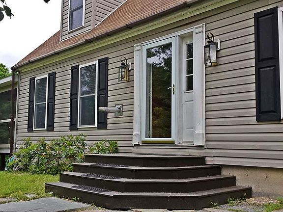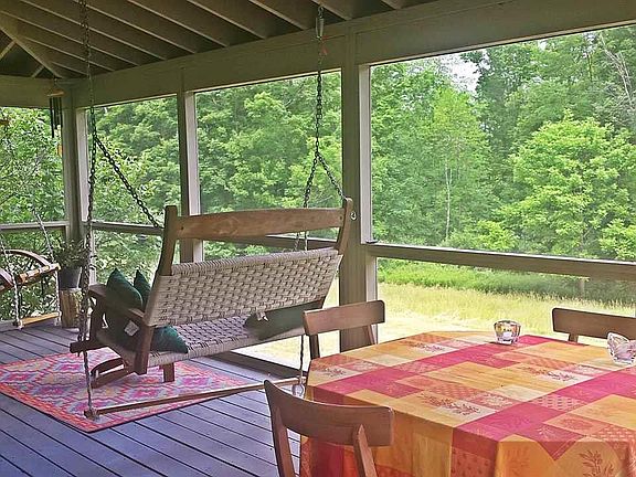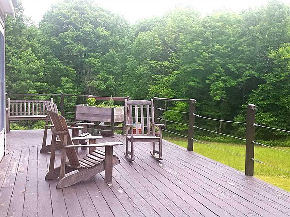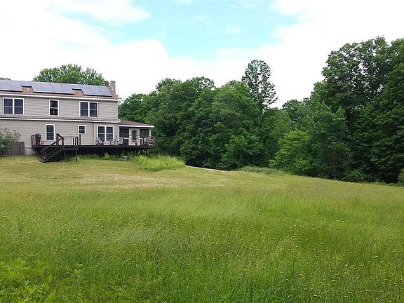 Privately situated on 13 acres, this lovely home features light airy rooms, tile and hardwood floors, large deck and awesome screened porch. Large master BR has a walk in closet and full bath. Trails meander through the woods, and open areas around the home offer large garden plots. Photovoltaic solar system provides affordable electricity, and a pellet stove for cozy comfort. Full basement with a one car garage completes this wonderful country home.