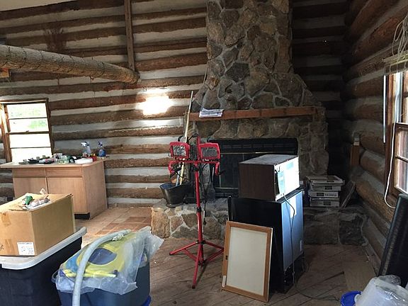 Rustic Log and chink home with potential galore. Renovations started and never finished. Materials to finish floors are in boxes in the home. Newer kitchen remodel has been started but appliances are not there. 180 degree view with light trimming and tree topping. This is a lot of home for the money. Beautiful stone fireplace reaches to the roof. Large covered front porch. Central heat and air in place. Home is being sold AS IS! Bring all offers.