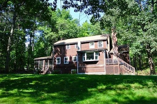 Privacy yet great access to commuting routes and the New Hampshire shopping are just the beginning! This spacious colonial offers 4 bedrooms, 3 fireplaces, a screened porch with hot tub, plus plenty of room for everyone! Formal dining and living room with fireplace, vaulted family room with a fireplace off the cherry kitchen and master bedroom suite with fireplace and bath plus walk in closet. Off kitchen also is a den with window seats and a wood stove. Recent roof, interior paint, and carpeting. Low maintenance yard set well back off the road. Enjoy functions and facilities at the high school nearby. Great test scores for the desired Groton Dunstable School System! Allow a day's notice if possible to schedule showings.