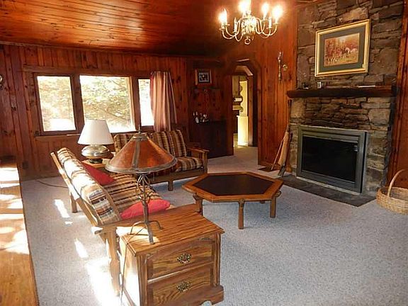 Rustic Mountain Chalet call "Fairway Lodge" situated adjacent to a fairway of Seven Springs Golf Course yet on a private wooded lot. Ideal rental or family vacation home. 3 beautiful stone fireplaces. 4 bedrooms and 3 full baths. Newer carpet and tile. Newer furnace. Covered porch and large patio. All the charm of yesteryear!
