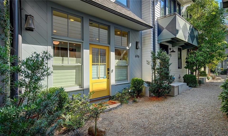 This is not a Condo, this is a beautiful ONE of a KIND Townhouse by Hedgewood Homes. The ONLY one Bed, one Bathroom in Summerhill Complex. Built in 2020 with all the upgrades. Enjoy the Coolest One Bedroom, One Bathroom Townhouse with Two Deeded/Assigned Parking Spaces. Enter into a Gorgeous, Private Courtyard with Lush Flora, Fauna and Spots to sit-out and socialize with your new neighbors. Once you enter the unit you are greeted with an open space, Over 10 foot ceilings, curved, bull-nosed walls, Sleek-Circa Lighting, site finished hardwood floors on both levels and oversized windows and doors allowing lots of natural light. All custom window treatments from GA Blinds Company in total $9,000 with remain with the unit. Quartz Counter tops including the island which can host 4 to 5 barstools. Custom crafted cabinetry so beautiful it looks like art including shelving and pantry. All electric stainless steel appliances. Small Outdoor fenced space for plants, pet, or privacy just off the kitchen. Upstairs houses the Primary Bedroom, primary bathroom and the laundry. The Spa bathroom has a large wall-in shower with seamless glass walls and door, quartz countertops with loads of room for pampering, designer tile on the floor and a skyline view of Downtown from the window. Stunning Primary Bedroom boasts circa lighting, custom blinds and black-out curtains, two large separate closets, high-ceilings, and hardwood floors. Stackable Laundry in closet to remain with sale of home. Fee Simple In the neighborhood enjoy the private pool and lounging area for the residents, tucked away behind Bass Street. Summerhill is the real star of this listing, walk-able to restaurants, shopping, Publix, Nail Salon, Day Spa, Wine Shop, Brewery, Wood Chapel BBQ, BIG Softie and Grant Park.