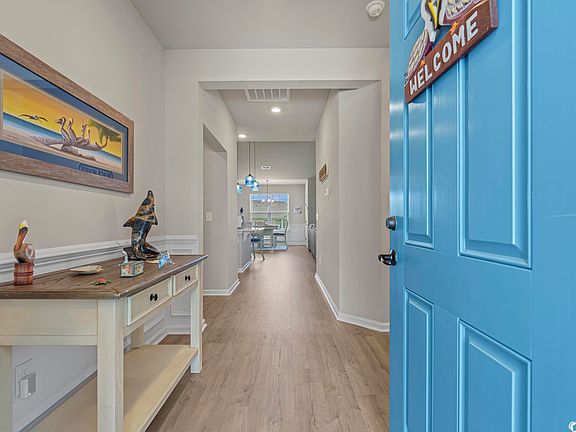 This is the home you have been looking for! Better than new and built in 2022, this beautiful open floor plan single story home features three bedrooms and two full bathrooms with a three car garage! Located in the highly desirable neighborhood of Belle Mer in Surfside Beach, east of Bypass 17, close to restaurants and shopping, and less than 4 miles to the beach. This semi-custom home features wainscoting, neutral paint, laminate floors throughout and tile in the bathrooms. The great room is bright and open with vaulted ceilings and a ceiling fan and opens into the kitchen and dining area. The kitchen features a beautiful blue tile backsplash, work island with space for bar stools, a large single bowl farmhouse style sink, stainless steel appliances, dishwasher, microwave and a pantry.The spacious owner’s suite has a ceiling fan and large bathroom with a beautiful zero entry tiled shower, dual sinks, a separate water closet and a large walk-in-closet. The two front bedrooms both have ceiling fans and are separated by a full bathroom with shower/tub combo. The spacious three car garage also includes a sink hook up. Located off of the garage is a full-size laundry room. Enjoy your morning coffee sitting on your front porch or grilling out on the back patio. The spacious fenced-in backyard overlooks the pond. This home is move in ready for it's next owner! The neighborhood of Belle Mer includes sidewalks and a beautiful pool. Just minutes to Surfside Beach, shopping, restaurants and more. Schedule your tour today! Square footages are approximate. All information is deemed reliable but should be verified by buyer.