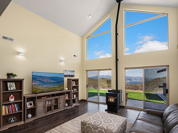 Elevated above Wenatchee's scenic landscape, this home offers sweeping views of the Columbia River. Relax in the hot tub while soaking in your own secluded scenery. The expansive yard is perfect for gatherings, including a bocce ball court for outdoor fun! Stay comfortable year-round w/ central A/C and cozy pellet stove. Open living room & kitchen provide seamless flow for hosting. Primary bedroom & newly remodeled bathroom on main. Upstairs loft features wet bar for added entertainment. Massive 1200 sq ft shop, w/ space for 3 cars, a half bath, & plumbed-in compressed air hook up. Mission Ridge Ski/Board Resort located nearby. Experience unparalleled views in a home you could call yours. Come see for yourself and schedule a showing today!