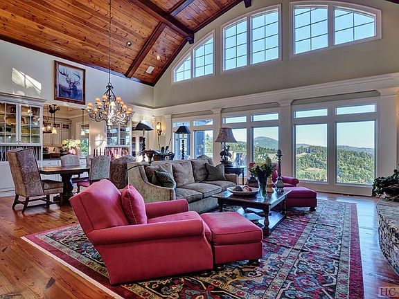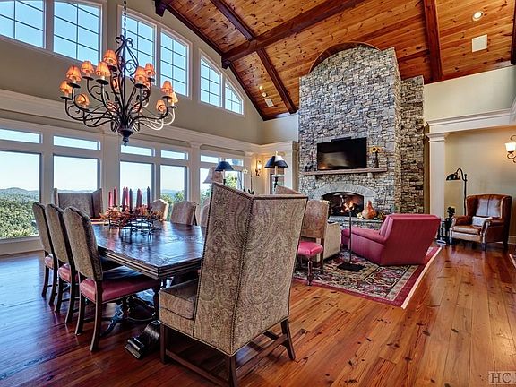 This stunning home located in Old Edwards Club at Highlands Cove offers classic mountain style. Situated at 4,400 feet featuring unobstructed short and long range views. As you walk through the front door you are greeted by top of the world views. It boasts panoramic views of the mountains. This Tim Sadlon built home offers 4 bedrooms with 4 bathrooms and powder rooms on the main and lower level. Reclaimed heart of pine hardwood floors throughout the home. The master suite is on the main level and the other 3 beautiful bedrooms are located on the lower level. A spacious open great room on the main level is complete with a floor to ceiling stone fireplace and open dining area and majestic views of the mountains through a wall of windows. The great room leads to a gorgeous and stunning chefs dream kitchen with Wolf and Sub Zero appliances. The kitchen leads to a beautiful screened porch with fireplace and the porch leads to a spectacular outdoor wrap around deck with fire pit and built in grill. The view from the deck is mesmerizing.The master bedroom comes with a gas fireplace and access to its own screened in porch. The master bathroom offers all the comforts you would expect. A spacious family room on the lower level has its own stone fireplace and easy access to another wraparound deck. The lower level has a well designed office area as well as its own kitchen and wet bar. The perfect place to gather with your family and have some fun. The 3 bedrooms downstairs all come with their own ensuite bathrooms.The trim work and the molding in the home are remarkable. The home comes with an attached oversized two car garage. Fiber optics are installed and operational offering high speed internet and the ability to stream your favorite TV channels. This home is being sold furnished with very few exclusions. Come join this popular and prestigious community. You can join the club for an additional fee and enjoy a long list of amenities. Mountain Dreams Begin Here !
