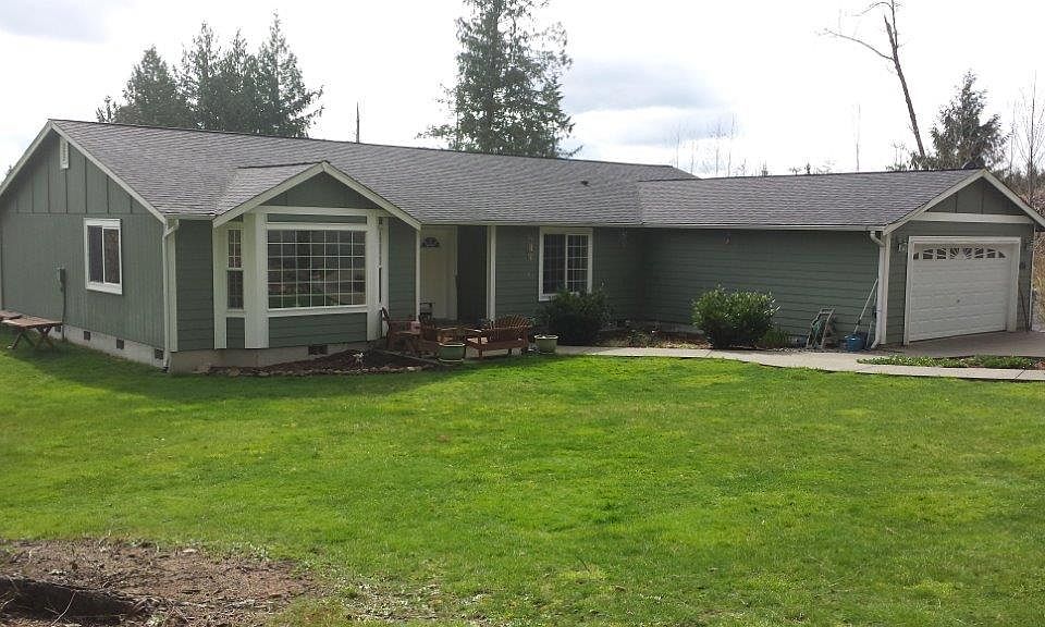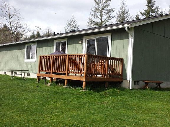 Newer 2135 Sq Ft home on 5 acres. Property backs up to Weyerhauser Lands. Home has 3 huge bedrooms with a 4th as an optional bedroom/office/den. Master bedroom with a huge master bath attached, with shower and a soaking tub. Kitchen has a huge walk in pantry and plenty of storage and a center island. Home has vaulted ceilings and a heat pump. 2 Car garage attached with lots of parking for RV, trucks and trailers. Beautiful country setting but only 15 minutes from I5.