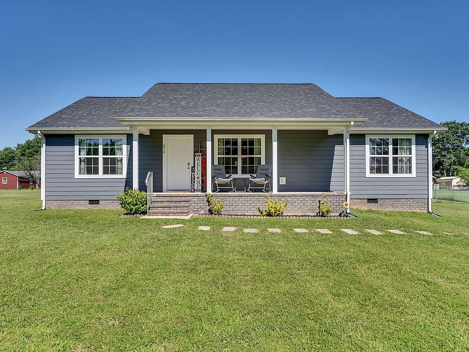 NO HOA! NO DOWN PAYMENT! COMPLETELY FENCED YARD! 8X10 SHED worth $3,000! Fall in love with this nearly new calming blue ranch style home with over .40 acres! Sellers spent almost $10,000 to fence the backyard where children can play safely, pets can roam freely, friends/family can be entertained with good BBQ, bonfires & outdoor games! 4 year old home in amazing condition w/ 4 year new kitchen appliances that stay. Washer & Dryer can stay as well (3 years old). Large covered front porch ready for rocking chairs or porch swing to enjoy the peaceful neighborhood & beautiful Tennessee weather! Primary bedroom is completely separated from the secondary bedrooms on the other side of the home! The primary bedroom is massive 15x22 & has a Jetted Tub! Open concept living so you can enjoy watching movies w/ others as you cook in kitchen. A large dining room table can be placed in the extra large living area as well which is 20x20! 10 MINUTES from Centerhill lake where you can fish and canoe!