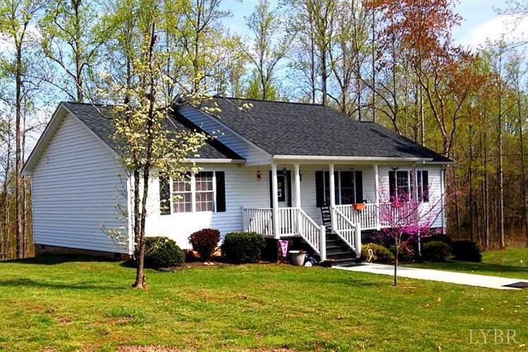 One level living with a great open floor plan, 3 bedrooms, 2 full baths, and huge living room. 20 X 9 Eat-in Kitchen with stainless steel appliances and lots of cabinet space. Newer home with only one owner. 6 X 22 Rocking chair porch and 12 X 10 back deck was recently stained. Low maintenance with vinyl siding and brick exterior. Beautifully landscaped and a circular drive. Convenient to BWX, Areva, Lynchburg, and Appomattox right off of 460.