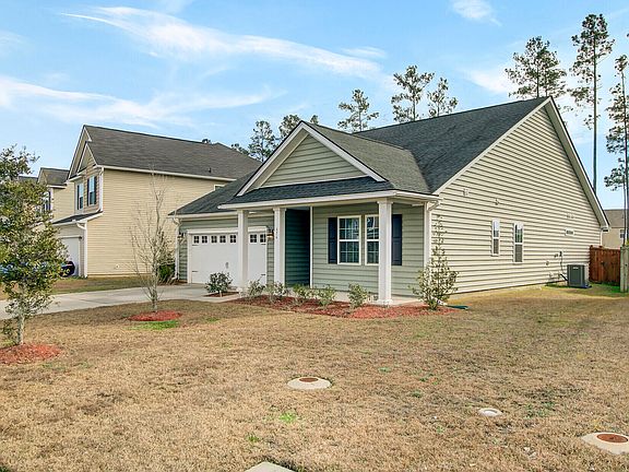 Welcome to this move in ready home. As you enter the home the wood grained laminate flooring looks great. The vaulted living room ceilings make it feel large. The kitchen is well equipped with plenty of cabinets for the discerning cook. The kitchen appliances convey. The master suite is located to the rear of the home. The adjoining Bathroom has a separate tub and Tiled shower with a large walk in closet. The back yard has a large covered patio. (which could easily be screened) and a Wood privacy fence with a green space buffer Behind. Schedule a tour today