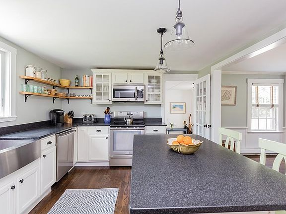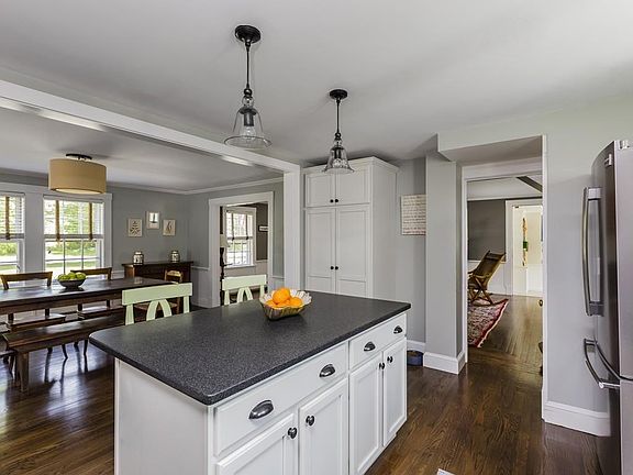 This spacious home is tastefully decorated and conveniently located close to shopping and Route 3. Many improvements have been made to this home including new heating system, electrical, septic and a brand new spacious kitchen. The kitchen has white cabinetry, stainless appliances, large stainless farmer's sink, stone counters, and attached dining area with built-in hutch. Working from home would be a perfect option for there are two home offices. The office on the first floor could be easily converted to a first floor master suite since there is access to a full bath. Located on the first floor off the mudroom is an attached 3 room au pair or in law suite. There is a lovely living room with fireplace which flows directly into a bright sunny family room with built-ins and large windows overlooking the back yard. Three good size bedrooms are located on the second floor. There is a large barn in the backyard perfect for any number of uses.
