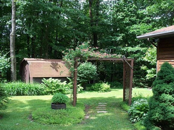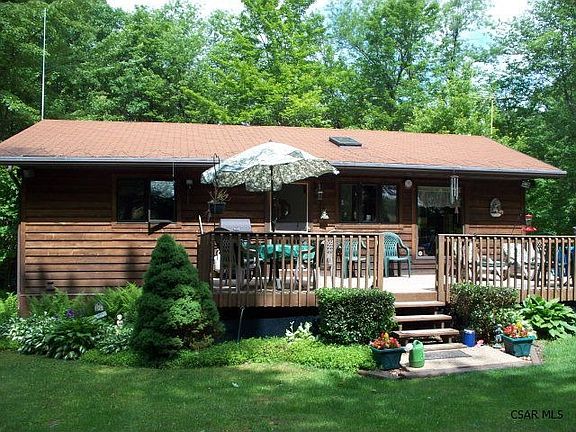 CONTEMPORARY COUNTRY CHARMER! A TRANQUIL SETTING COMPLIMENTS THIS LOVELY 2 BEDROOM HOME. THE MAIN LIVING AREA FEATURES CATHEDRAL CEILINGS, KITCHEN ISLAND AND A STONE ACCENT WALL. THE OUTSIDE OFFERS A WRAP-AROUND DECK, 3.1 LEVEL ACRES, STORAGE SHED AND SO MUCH MORE! NICE SIZE 2 CAR GARAGE WITH WORKSHOP AREA. THE AIR EXCHANGE SYSTEM IN ATTIC IS ABOVE TWO BEDROOMS AND BLOWS INTO THE MAIN LIVING AREA. Approx. boundary lines-Includes level wooded area behind home, to the left over by telephone poles and sate. dish, to the rt halfway into woods.