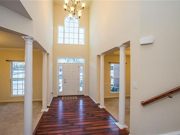 Freshly painted in today's neutral colors, this beautiful home sits on one of the largest corner lots in the Great Meadows community. As you walk through the front door you can take in the breathtaking two story foyer. There is a first-floor office space with grand french doors, which could be used as a 5th bedroom. This home boasts an open floor plan, an upper level catwalk which overlooks the stunning two-story family room with gas fireplace. The chef's kitchen features granite counters, a double oven, custom cabinetry, stainless steel appliances, gas cooktop and a butler's pantry. Upstairs, you'll find a luxurious master suite which includes a sitting area, en-suite bath with double sinks, Jacuzzi tub and separate shower. Three additional spacious bedrooms can also be found upstairs. This amazing homes also has a 3 car garage and a large back yard. This home is in the highly rated Peters Township School District, and near shopping, major travel routes and minutes from the T.