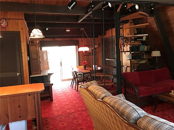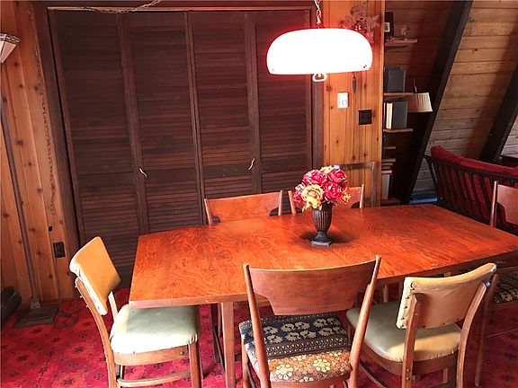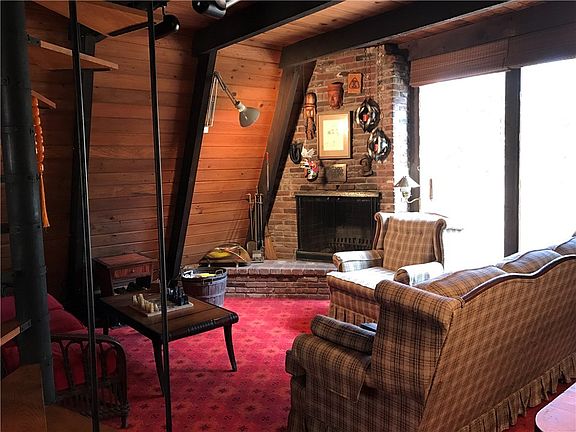 Darling Bavarian A-Frame is walking distance to the slopes at Laurel Mountain Ski Resort. Living room with cozy wood burning fireplace has large seating area. Dining room with sliding glass doors to the back patio comfortably seats 8. Loft sleeps the whole family which is large enough to convert to 2 separate bedrooms but it'a nice and open the way it is! Plenty of storage. Floor to ceiling windows showcase nature's beauty! You can view it all from the sizable deck off the bedroom. Secluded wooded lot perfect for all your outdoor activities! There's lots of room for parking with 3 driveways that lead to the house.