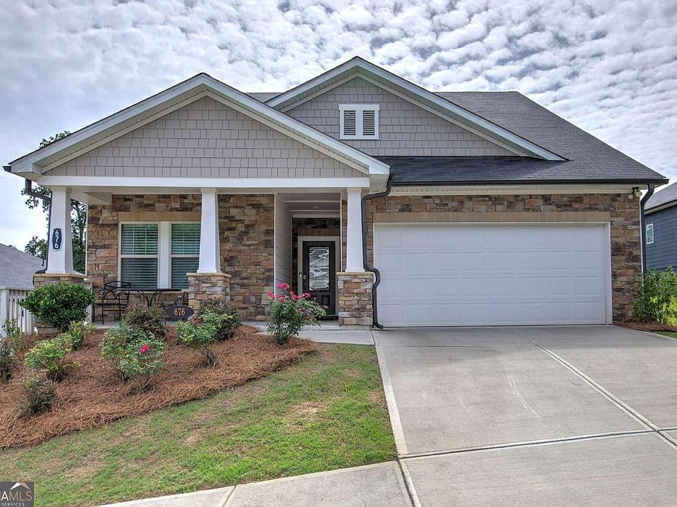 Welcome Home to 676 Valdosta Drive, Canton GA! This traditional craftsman-style home offers a blend of elegance, comfort, and modern amenities, making it an ideal living space. The master bedroom is conveniently located on the main level, featuring a walk-in closet and tray ceilings adding a touch of luxury and spaciousness. The master bathroom has a double vanity and a glass-enclosed tile shower. The Laundry Room is also located on the main level making laundry tasks easier and more accessible. The gas fireplace situated in the living area provides warmth and a cozy atmosphere. The kitchen is equipped with solid surface countertops, a gas range, a breakfast bar, and a walk-in pantry, offering ample storage space for kitchen essentials. There are two additional bedrooms and a full bath on the main level. The flooring in the home consists of luxury vinyl plank with carpet in the bedrooms and tiled floors in the bathrooms. The entry foyer and separate dining room feature judges paneling, giving the spaces a formal and elegant feel. On the upper level is an additional bedroom, full bath, and a loft that provides extra living space that can be used as a play area, office, or relaxation spot. On the exterior, you will find a fenced-in backyard which provides privacy and a safe area for children and pets to play. The Home Owner's Association Amenities include a lake, playground, pool, tennis courts, sidewalks, and street lights, enhancing the community living experience. Overall this home combines the charm of a traditional craftsman style with modern features and community amenities, making it a perfect choice for comfortable and stylish living.
