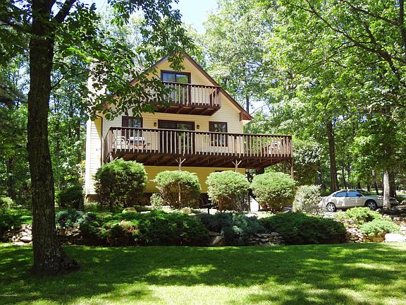 This 3 Bedroom, 2 Bath Chalet Is Sure To Make You Smile! The Open Layout Offers Large Living Room, Dining Area & Kitchen With Brick Fireplace, Sliding Door Leading To The 2nd Story Deck, Overlooking Beautifully Landscaping Property, Lower Level Offers Large Family Room With Wood Stove & Outside Entrance. Extras Include New Skylights, New Vinyl Siding, New Roof, Upgraded Insulation Throughout, French Drain System, Radiant Heating System, Extra Long Paved Driveway & 1-Car Garage....Owner Will Include Lot Next Door (PM-14028) & Have Over 2 Acres Of Property!