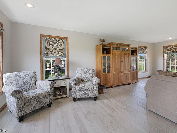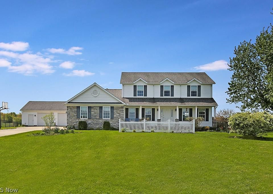 Beautiful horse property/hobby farm resting on over 5 grassy, fenced acres with picturesque views. Fully outfitted with all the conveniences, yet a tranquil retreat. The relaxing front porch leads inside to a study with built-in cabinetry. The large living room is sunny with tons of windows & easy care tile floor. Spacious eat-in kitchen adjoins the beautiful screened porch with low maintenance decking to while away the hours overlooking scenic views. Main floor laundry & powder bath complete the first floor. Upstairs, the vaulted primary suite has a full bath and walk in closet as well as a mini-split heat/AC to ensure you're perfectly comfortable in any weather! Two additional bedrooms and a full bath round out the upstairs. The lower level has been partially finished with a recreation room featuring a media built-in. The 30x39 barn with metal roof and water has its own driveway, 2 stalls, plus plenty of extra space. Electric fenced pastures. Parking for 4 cars and/or toys in the heated, attached 2-car garage with water, PLUS a 33x32 detached 2-car garage, also heated, with cold water (water heater hookup is present). Built in workbench, door openers, side door & window...endless possibilities! What a great place to call home!