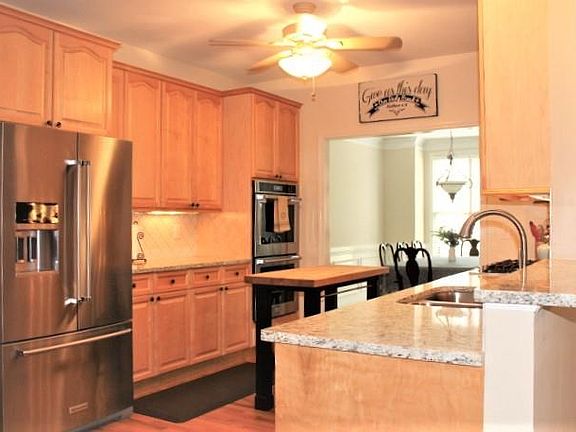 - Kitchen Features: Breakfast Bar, Cabinets Stain, Pantry, View to Family Room, Stone Counters, Breakfast Room