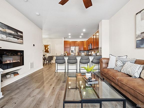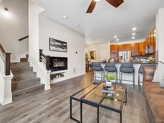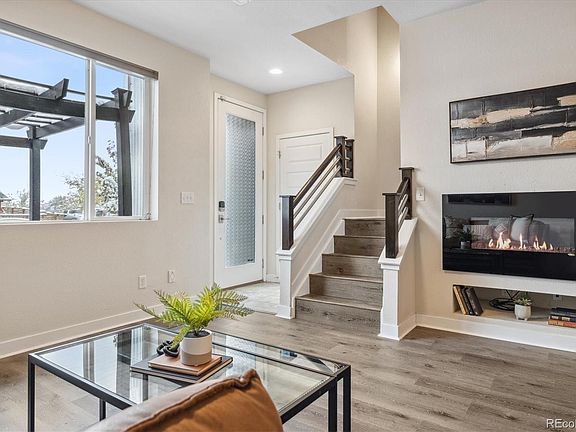 Just 15 minutes from vibrant Downtown Denver, this tech-forward, low-maintenance modern townhome boasts a new roof (2024), smart Ecobee thermostat, smart garage door, smart locks, and a Simply Safe security camera and system to provide sound peace of mind. // Inside, an open-concept layout invites you into a spacious living area with new durable luxury vinyl plank flooring underfoot (2024) and a central vacuum to keep everything tidy. The gourmet kitchen features a slab granite breakfast bar, ample cabinetry, a gas range, stainless steel appliances, and a center island. The dining room boasts a new chandelier (2024). Large windows and nine-foot ceilings flood the home with natural light, while a cozy fireplace in the living room adds a warm touch for winter. // Upstairs, two luxurious bedroom suites offer an ensuite bathroom and walk-in closet. The primary suite features French doors and a 5-piece bath with a lavish soaking tub. The high-efficiency washer and dryer tucked in the upstairs laundry room make daily living a breeze. An attached two-car garage provides parking and generous storage. // Midtown boasts a variety of community-centered amenities. Enjoy a local microbrewery, café, community garden, an outdoor amphitheater with summer concerts, dog parks, fountains at Home Plate Park, and a nearly complete 22-acre park. Outdoor enthusiasts will appreciate easy access to the Clear Creek Bike Path for biking, running, and soaking in Colorado’s natural beauty. Additional retail development is scheduled nearby; don’t miss this unique opportunity to build equity now. Commuting to Boulder or Denver is a breeze with easy highway and RTD light-rail access. // A lender credit of $8,300 is available with our preferred lender via the Community Reinvestment Act (CRA)! Inquire with the Listing Agent for details.