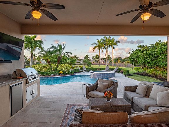 Summer kitchenRetractable screen enclosureLarge fenced lotPolished porcelain tile floorsFire pitGas fire pitWood flooring
