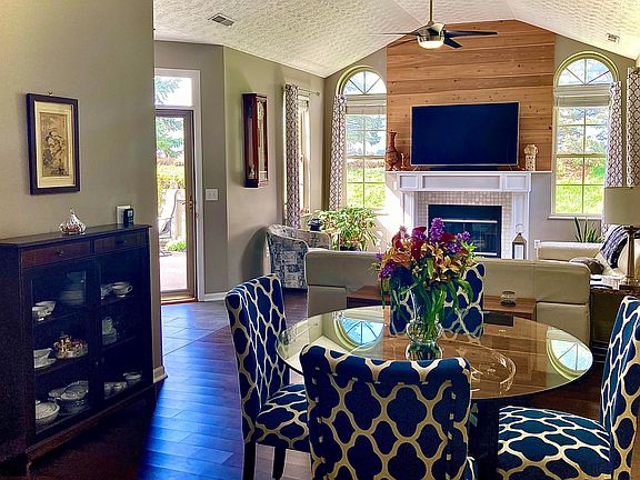 Welcome home to your very own Chateau at Charleston Lake! This meticulously maintained home has been generously updated throughout. Enjoy new flooring in the living, dining, and master. Tiled flooring at the entry and in both full baths. Custom shelving and cedar shiplap entertainment center adorn the beautifully updated fireplace in the living room. Your new kitchen is equipped with water softener, reverse osmosis, gas range, quartzite countertops, and a coffee & wine bar. This 3 bedroom 2.5 bathroom home has nearly 2,000 square feet of living space. First floor laundry. 2 car attached garage and large patio with private scenic views. The community grounds include a clubhouse w/gym, on site library, and a heated pool. Convenient location to shopping, dining, and recreation!