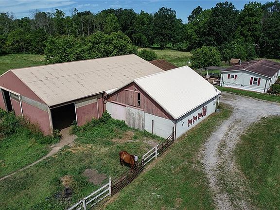 RARELY AVAILABLE beautiful 9.7 acre parcel with fantastic 50 x 70 pole barn with 6 stalls, additional 28 x 48 building with horse stall, tack & grooming area, two pastures, huge 32 x 40 metal outbuilding with concrete floors and 3 bedroom ranch home. Brand new metal roof on front barn (2020), back pole barn also with metal roof, six stalls and plenty of room in fully fenced area for horses. Nicely maintained 3 bedroom, 2 full bath ranch with brand new carpet (2020), fresh paint (2020), new hot water tank (2019), furnace (2006). Living/Dining room area with cathedral ceiling. Free-standing gas fireplace and natural woodwork give a warm inviting feeling. Beautiful bay window to take in the amazing views. Spacious kitchen with vaulted ceiling, convenient island and plenty of storage! Master bedroom with walk-in closet and full bath, plus two additional bedrooms and another full bath. Relax and enjoy the outdoors under the covered Trex deck. DO NOT GO ON THE PROPERTY OR GO IN BARN OR OUTBUILDINGS WITHOUT AN APPOINTMENT. Delayed Negotiations until Thursday, August 20th starting at 2:00 pm.