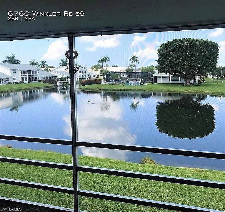 Great opportunity to have a place in Florida at the right price. This 2 bedroom 2 bath condo has the best water view and features living/dining and eat-in kitchen with lots of cabinet space and a pass thru opening to the dining/ living area. Enjoy your evening sunsets on your screened lanai while over looking the lake! You and your visitors will appreciate the pocket door enclosing a private area with guest bedroom and guest bath. This community has a community pool, clubhouse, exercise room, grill area, shuffleboard and more. And just a few short blocks from a PUBLIC 18-hole golf course! Great location!! It is close to Restaurants, Shopping, Barbara B. Mann Performing Arts Hall and easy access to Fort Myers Beach, Sanibel Island and more! Yes it needs updating but where can you find property to buy in a convenient location with Low HOA fees at this price! Call today for your private viewing.