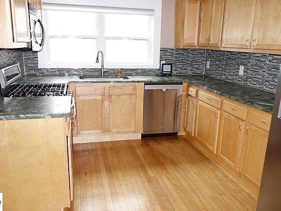 BEAUTIFULLY REMODELED OLDER COTTAGE with all of the modern day luxury combined with the charm of the days gone by! Walk to Lake Leelanau & only 8 Miles to downtown TC! Storybook full stone fireplace, wonderful refinished hardwood floors, custom granite countertop, updated windows, siding, roof, electric, furnace, water heater, doors & more!! 2.5 car detached garage w/ full 2nd story loft storage. Gorgeous custom tile bath w/ walk-in shower, stainless appliances, covered porch & small/EZ maintenance yard! Age of home is a guestimate & sloped floors have been that way for the almost 20 years that owner had lived there. Really ideal for empty nesters or single occupant. Would make a great weekly rental (Buyer would need to verify with township for regulations).