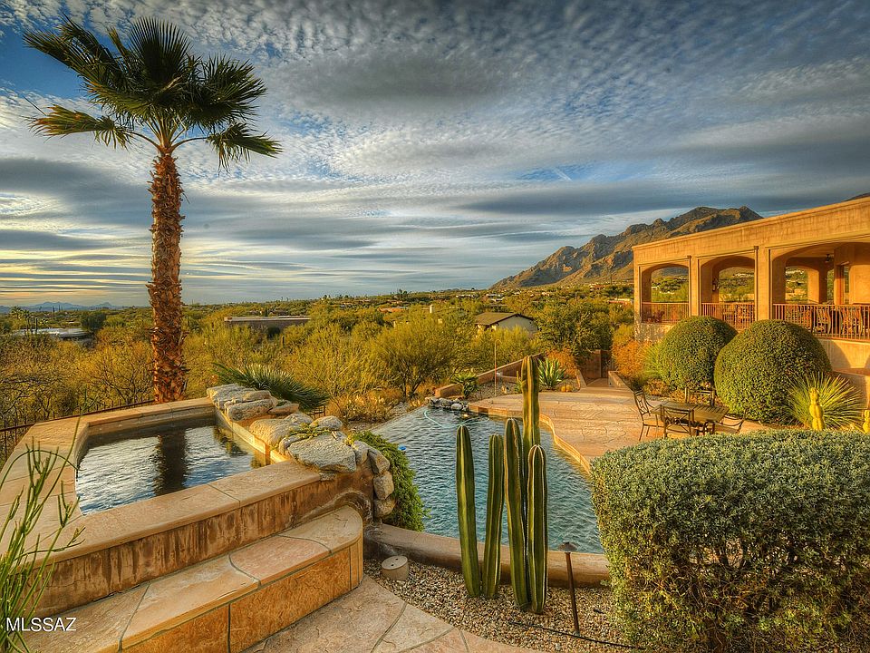 * *MAJESTIC MASTERPIECE* RARE FIND! AMAZING ESTATE - PERCHED ON HILLSIDE IN CATALINA FTHILS BOASTS QUALITY & ELEGANCE! SOLID MASONRY CONST OFFERS VERY VERSATILE FLRPLAN- PERFECT FOR MULTI- GENERATIONAL, SEVERAL BEDROOM WINGS- ALL *EN-SUITES* + PLUS INCREDIBLE ''PRIVATE'' OFFICE W/ DUAL DESKS, PLENTY OF BUILT INS & GREAT VIEWS! ENJOY TUCSONS OUTDOOR LIVING...RESORT STYLE HEATED POOL, BUBBLING SPA,2 TIERED WATERFALL- ROCK BOULDERS- COVERED OUTDOOR ''AL FRESCO'' KITCHEN- SMOKER, BBQ, EVEN YOUR OWN PIZZA OVEN! UNFORGETABLE VIEWS IN EVERY DIRECTION- WRAP AROUND VERANDAS CREATE A MAGICAL EXPERIENCE...SPARKLING CITY LIGHTS, BRILLIANT SUNSETS MAKE THIS A DREAM LOCATION! BONUS* REC/EXERCISE RM, WINE CELLAR, TRUE CHEFS KIT- 4 OVENS! LACANCHE RANGE, BUTLERS PANTRY, GRANITE CTRS/STONE FLRS/& ACCENTS!