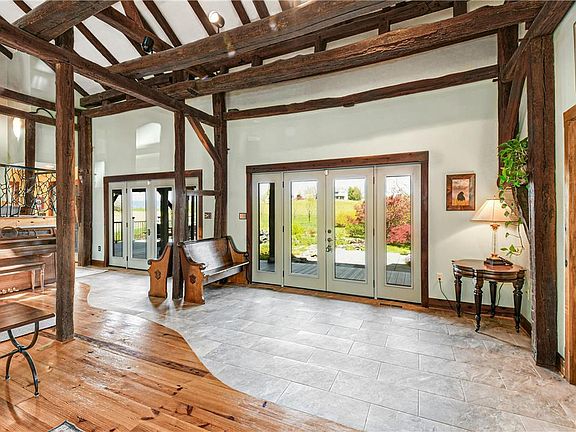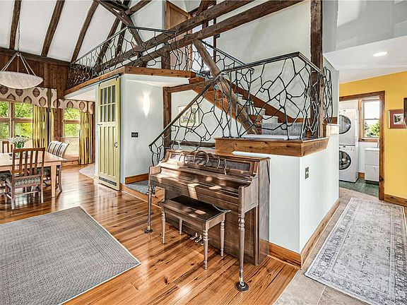 Surrounded by open fields, this circa 1855 barn was thoughtfully converted in 1999. Key interior details including hayloft ladders, exposed wood beams, and a central cupola, blend harmoniously with modern upgrades and artistic finishes. Soaring ceilings and abundant windows let in the beauty of every season.