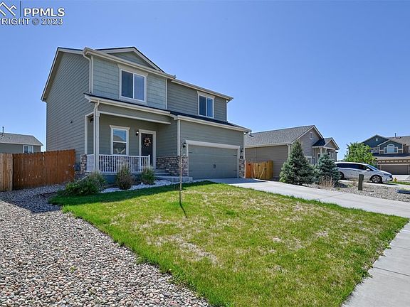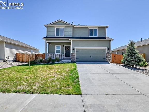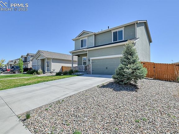Come fall in love with this stunning, immaculately kept home with tons of natural light and charm. As you open the front door you are greeted by gleaming composite floors, beautiful light fixtures, trendy paint, 9ft ceilings making this home feel open and spacious. You will love entertaining in your open concept kitchen with an amazing bar-top that opens to the dining room and flows right into the living room for all your family gatherings. As you step onto the 2nd level you are invited in a sun-filled, sizeable cozy loft. You will cherish waking up in your master bedroom to the amazing Pikes Peak views. The back yard boasts a large stamped concrete patio to enjoy a cup of coffee on those beautiful summer Colorado mornings. Perfectly situated in the highly sought after Larson Ranch with walking trails, parks, schools, and shopping. Conveniently located to Fort Carson, Peterson & Schriever Air Force bases. Come see why you will want to call this gem home!