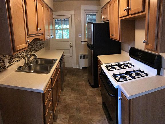 This bright 2br apartment is on a very quiet tree lined street, but it's just blocks from Shadyside, Bakery Square, East Liberty, and Squirrel Hill! It's only one block from Point Brugge, the city's best brunch spot, and Point Breeze's quaint business district, which includes an Italian restaurant, a coffee shop, and a corner store. You may never leave your block! You can catch bus 69 downtown, which stops just two blocks away, though, and/or keep your car in your own 1 garage! You'll occupy the entire 1st floor of this beautiful Colonial house, so you won't share walls with anyone. The apartment is bright because there are newer dual-pane windows with white mini-blinds on all 4 sides. The bedrooms each have a built-in air conditioner, large closet, and a ceiling fan. The modern kitchen has a large refrigerator, new dishwasher, microwave, plenty of cabinets and drawers, and room for a small table and chairs. The bathroom features a pedestal sink, tile floor, and tile tub surround. The living room features a decorative fireplace, nice two-toned paint, a coat closet, and new light fixture. And, you get free laundry in the basement, plus access to a shared patio! You are welcome to bring your small pet, with $150 pet deposit and our approval. Rent is $1,250/mo plus gas, water, and electric. Please call Scott Peterson from SLC Realty for an appointment. Available Sept 1st ! $40 application fee and security deposit equal to one month's rent. Tenant pays gas, electric, and 1/2 of water/sewer.