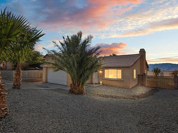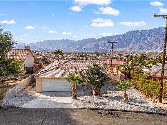 Paid Solar! Enjoy instant utility savings, RV pull-through access, and breathtaking panoramic views, including the iconic windmills of Palm Springs and city lights. Welcome to your charming new home! Built in 2005, this 3-bedroom, 2-bath home offers over 1,600 square feet of interior living space. Step inside to a stunning open floor plan with vaulted ceilings, abundant natural light, and tile flooring throughout. A cozy fireplace is perfect for cool desert evenings. The kitchen opens to the dining and living areas, creating a seamless space to stay connected with family, friends, and guests. Step outside to a serene lattice-covered patio, where you can relax and soak in the expansive mountain views. This home is ideally located in Desert Hot Springs, just 20 minutes from Palm Springs and Palm Desert, offering easy access to shopping, dining, and entertainment. Perfect for first-time buyers, those seeking a second home, or an ideal vacation rental investment. Don't miss this opportunity--schedule your private showing today!