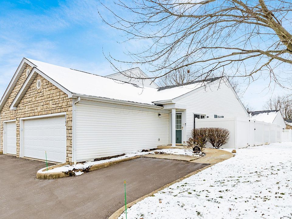 Rare 3 Bedroom One Story Condo in the desirable Gender Park Community with clubhouse, workout facility, pool and park. This end unit condominium has a heated 2 car garage, private backyard with patio and newer privacy vinyl fencing, nice living room with wide plank flooring, kitchen with breakfast bar, pantry and stainless steel appliances, dining room, separate big laundry room, primary bedroom suite with walk in closet and full bath, 3rd bedroom could also be used as a home office if desired, attractive partial stone facade. Great location near parks, bike/ walking trails, churches, schools, restaurants and shopping!