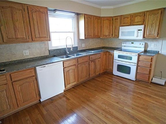 Wonderful all brick ranch with a rocking chair porch in the West School district. Plenty of living space with lovely hardwoods and newer carpet. Updated kitchen cabinets, counters, and appliances. Gorgeous wood burning stove in the den with built-in desk. 3 large bedrooms and 2 baths. An amazing entertaining space in the finished basement with gas fireplace, bar, and storage space. Oversized 2 car garage with workspace. Storage shed out back and a sandy play area for the kids. Lovely, wooded double lot.