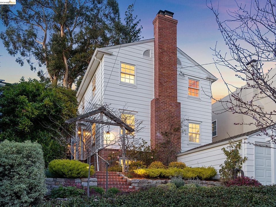 The crisp white exterior of this elegant Cape Cod is accented by pretty divided windows, beautiful brick walkways, masonry walls, and lush landscaping. Enjoy the garden on your way to the private front entrance. The A+ floorplan begins with the main level: a formal living room with a large brick fireplace, and a beautifully-integrated dining room / kitchen combo that flows out to the patio and backyard beyond (plus a hidden half bathroom)! The luxury kitchen appliances suite includes a Wolf range & hood, Sub-Zero fridge/freezer, and Bosch dishwasher. A gorgeous staircase carries you up to the upper level featuring all 3 bedrooms (1 is the primary suite), and 2 full bathrooms. The lower level offers a secondary living room with laundry, storage, and garage access. Upgrades list includes: owned Sun Power solar panels, upgraded windows throughout, newer roof, and refinished oak flooring. The location is one block from Chabot Elementary, and close to the Claremont Hotel & Club and Star Market, as well as all of Rockridge offerings along College Ave & BART. Lifestyle and elegance on Manor Crest!
