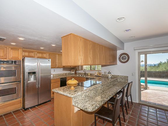 Enjoy the lovely city lights and mountain views from this Classic Tucson Adobe home situated on a very private .85-acre lot. Features include updated kitchen, master shower, newer AC/Heat, dual pane windows, 4-yr new roof and huge covered patio leading out to the spacious yard, sparkling pool and awesome putting green. More highlights are granite counters, stainless steel appliances and breakfast bar in kitchen, greatroom with fireplace, 3 Bedrooms + Den, 2 Bathrooms, 2-car garage with storage plus detached 1-car carport and dual cooling for added energy efficiency. All tucked away in an awesome foothills neighborhood. This house has great bones and with some new flooring and paint, you will be excited to call it ''Home Sweet Home''.