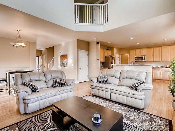 Delight in this two story 3 bed 3 bath (+ office) home in the desirable Quebec Riverdale community. Thoughtfully designed open floor plan enriched w/ gorgeous bamboo floors throughout main level is made for entertaining as the gourmet kitchen adjoins both the family & dining rooms. Spacious Chef's kitchen features gas cook-top, double oven, slab granite counters with island, SS appliances, abundant cabinet space, and eat-in area. Family room is accentuated with vaulted ceilings that embrace the natural sunlight. An updated 1/2 bath & laundry room complete the main level. Upstairs you'll find the master bedroom and en suite bath w/ 5 piece, granite double sinks, and walk-in closet; 2 bedrooms and updated full bath. Basement has been framed for entertainment room, bedroom, bath rough-in...ready for your custom finish. New interior & exterior paint. New patio. Base foundation for storage shed.