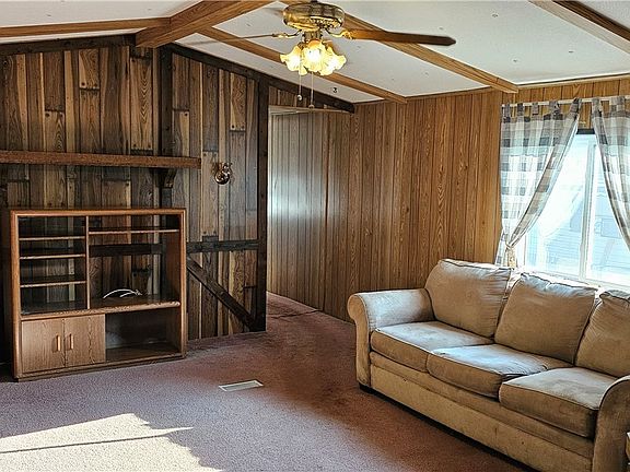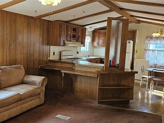 This cozy home, nestled in a serene setting, offers the perfect blend of low maintenance and affordability. With 3 bedrooms and 1 bathroom, it provides a comfortable living space ideal for those seeking a peaceful retreat without the hassle of extensive upkeep. Focus on making impactful changes that refresh the space and enhance its overall aesthetic. Kitchen appliances and furnishings are included. You will need to get park approval. Roof was resealed last year.