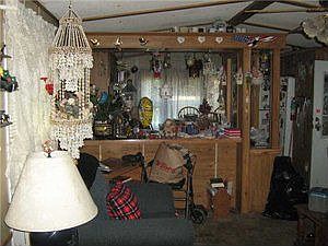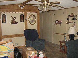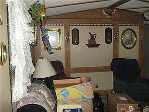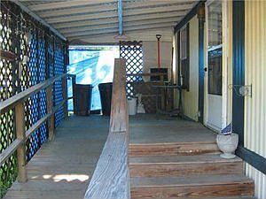 Handicap ready with ramp easy access to the parking or use stairs to covered deck on corner lot has a row of bushes along the road for privacy. Built-ins thru-out..Kitchen has built in desk and showcase cabinet as you enter with the kitchen counter is possible breakfast bar open to livingroom & dining area in front has bay window with shelf. Master bedroom has a wall of closets with laundry access in the hall. Open extra large shower gives access for wheelchair and even has higher toilet. Well maintained, furnace has new thermocouple & motor '08, newer rubber roof. 2 storage sheds included.