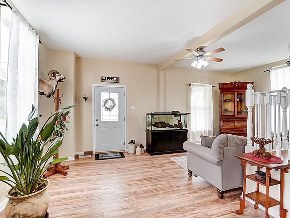 Charming former schoolhouse on 1 ac level lot. Large white eat in kitchen, open floorplan with high ceilings and tons of natural light. Secondary bedrooms feature skylights. Built in closets with organization in all bedrooms, and desk in master bedroom. Wildflower garden at back of property, fruit trees/bushes. New roof and new sump pump in 2019.