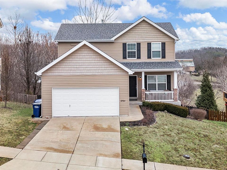 Beautiful Like New 3 bed, 2.5 bath, 2 Story home located in the heart of sought after Estates At Eagles View. Inviting floor plan w/ welcoming entryway that flows into spacious living room w/ gas fireplace and large windows overlooking a stunning views! Features a large eat in kitchen w/ stainless steel appliances, center island, coffee bar and pantry. Direct access off kitchen to a lovely deck and paver patio below to a fenced backyard for year round enjoyment. Has main floor half bath tucked away next to entrance from attached 2 car garage. The primary suite has a wonderful walk in closet w/ new custom closet system and ensuite bath w/double sinks, walk in shower and separate soaking tub. 2nd floor also has 2 additional nice sized bedrooms, 2nd full bath, and laundry w/ newer neutral carpeting throughout this level. Basement is dry w/ nice tall ceilings, walkout, and rough-in for a bathroom, all ready to finish for extra living space and instant equity!