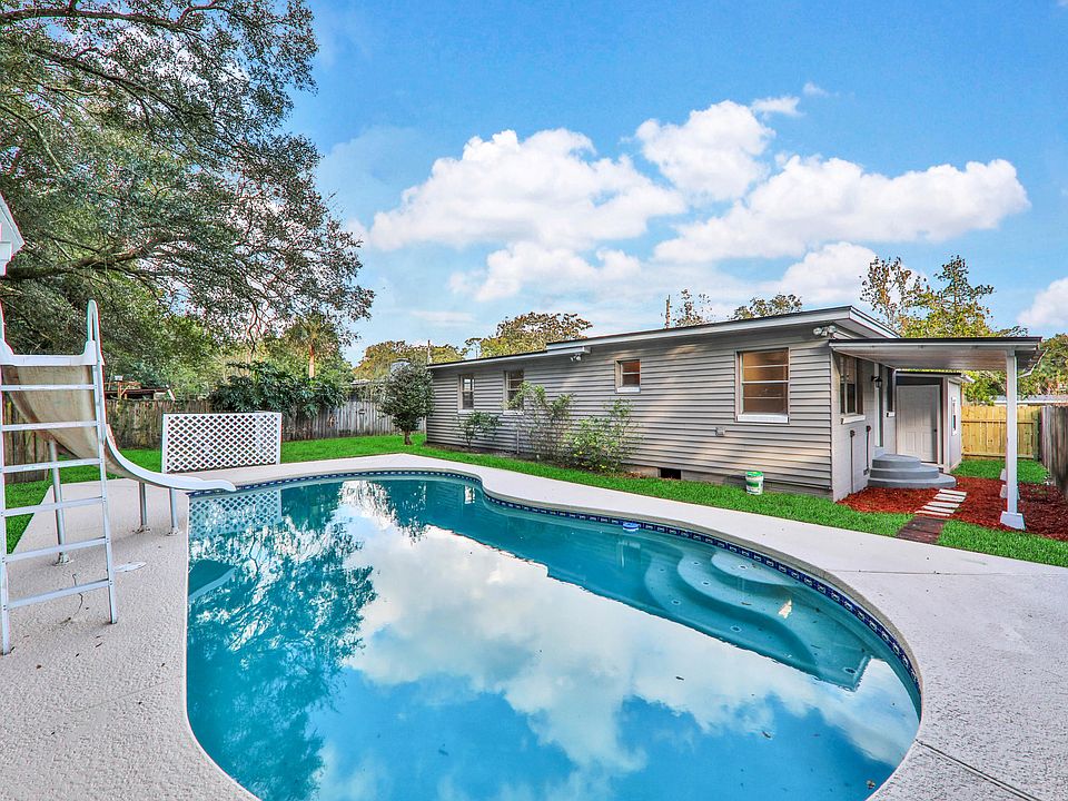 Tastefully remodeled concrete block pool home situated in the heart of Arlington. This spacious 3 bed, 2 bath home has exquisite features including formal living and dining rooms, family room with fireplace, inside laundry room and 2 attached storage sheds. Brand New roof, Re-piped, New water heater, All New plumbing and electrical fixtures, Updated bathrooms with tile and granite counters. Custom kitchen with white shaker cabinets, granite counters, subway tile backsplash & Brand new stainless steel appliances. New tile and Beautifully refinished original hardwood floors throughout. Enjoy Florida life and soak in the sun in the breathtaking backyard oasis with your in-ground swimming pool with freshly painted deck. This home is a must see!
