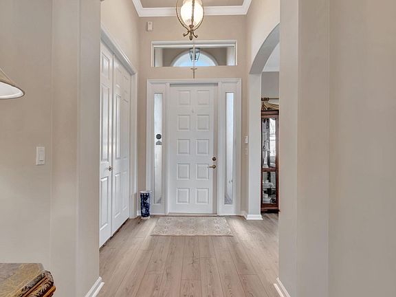 Welcome to your dream home in the much sought after gated community of Journeys End! This stunning 4 bedroom, 2.5 bath is situated on a peaceful cul-de-sac with an absolutely breathtaking lake view. Open concept layout, eat-in-kitchen perfect for both casual family meals and entertaining. One of the standout features is the large lot, complete with fenced in side yard. The crown jewel is the expansive screened-in Patio that overlooks the lake. The master suite boasts a recently upgraded bath with solid wood cabinets, porcelain floors, granite countertops & spacious closet with custom built-ins. This home is not only beautiful but equipped with lots of features: Sound system throughout the house, A/C 2017, generator hookup, accordion shutters complete, vaulted ceilings, custom window treatments, new plantation shutters 2023, crown molding, new pipes and plumbing throughout the entire house 2020, located in an "A" rated school district. Don't miss the opportunity to make this extraordinary house your new home. This home is meticulously kept and immaculate. It's move in ready!