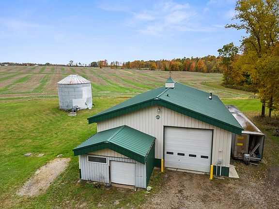 Secluded country oasis nestled on 25 acres meticulously maintained and move in ready with a huge heated 40x60 pole barn large enough for business ventures or workshop. Outbuilding easily converted to horse stalls or for livestock. Tongue and groove pine interior throughout, open concept living with vaulted ceilings, new light fixtures, great kitchen has plenty of cabinetry, granite countertops, tile backsplash and island seating. Two separate owner suites - one on each floor for privacy include large closets and ensuite baths. Expansive loft area perfect for office or recreational room. New fully finished lower level bedroom with egress window. Lower level is waiting for your finishing touch, with a walkup entrance and loaded with storage.