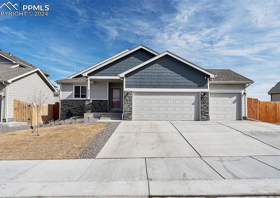 Welcome to your new home! This stunning rancher, built in 2021, offers light and bright living in every detail. Featuring 4 spacious bedrooms and 3 full bathrooms, this home provides plenty of space to spread out. Coming inside from the front covered porch, you'll be in awe of the low-maintenance luxury vinyl plank flooring throughout the main living area, combining style with durability. With a front bedroom and full bathroom, this area is wonderful for having guests. Further down the hall, you are greeted by the open-concept layout creating a seamless flow between the living room, dining area, and gourmet kitchen featuring stainless steel appliances, quartz countertops and a gas range. Sliding doors off the dining area take you to the fully-fenced backyard with an extended concrete patio for enjoying the Colorado sunshine. Back inside, the main level master suite, complete with a spa-like ensuite 5-piece bathroom and walk-in closet, provides a serene retreat at the end of a long day. Just steps away is the laundry room leading into a 3-car garage giving you plenty of room for extra vehicles or storing the outdoor gear. Downstairs, the finished basement adds even more living space, perfect for a recreation room, home theater, or fitness area along with 2 bedrooms and a full bathroom. Located in the Lorson Ranch neighborhood, close to Widefield D3 schools, parks, and the military bases of Peterson, Schriever and Fort Carson, this home is the perfect combination of comfort, style, and convenience. Don't miss your chance to make this your forever home! Schedule your private showing today.